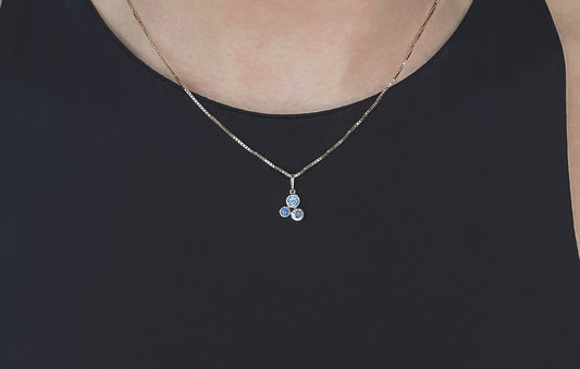 Juno anheng i hvitt 585 gull med diamanter W/SI totalt 0,19 ct. og Akvamarin