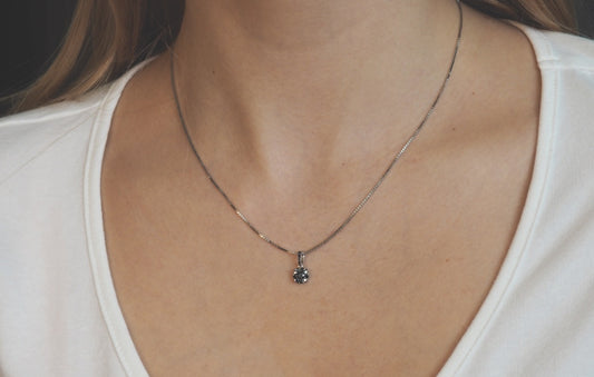 Polar Black anheng i hvitt 585 gull med diamanter i hempen TW/SI totalt 0,02 ct. og sort senterdiamant Ø 4 mm.