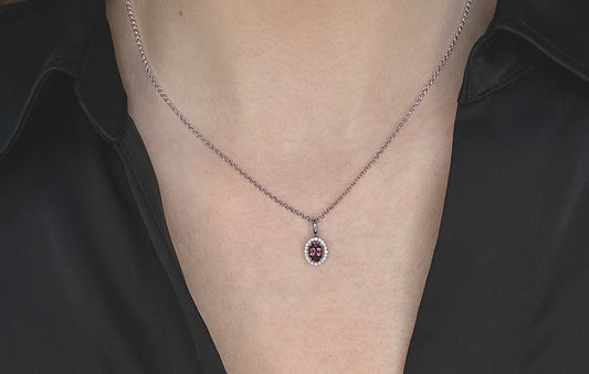 Paloma anheng i hvitt 585 gull med diamanter W/SI 0,08 ct. med oval fasettert rhodolitt 6x4 mm ca 0,60 ct.