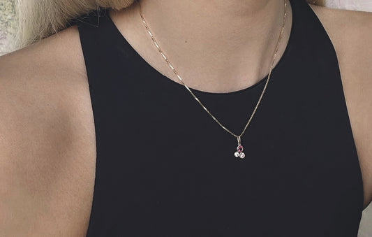 • Polar Rubin anheng i gult 585 gull med diamanter i hempen TW/SI totalt 0,02 ct. og rubin sentersten Ø 4 mm.