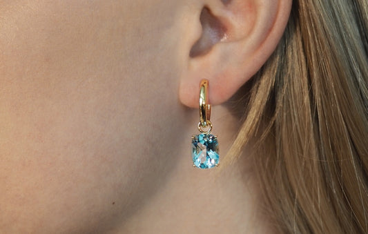 Celeste tilbehør til øredobber i gult 585 gull med radiantslipt sky blue topas totalt 10 ct.