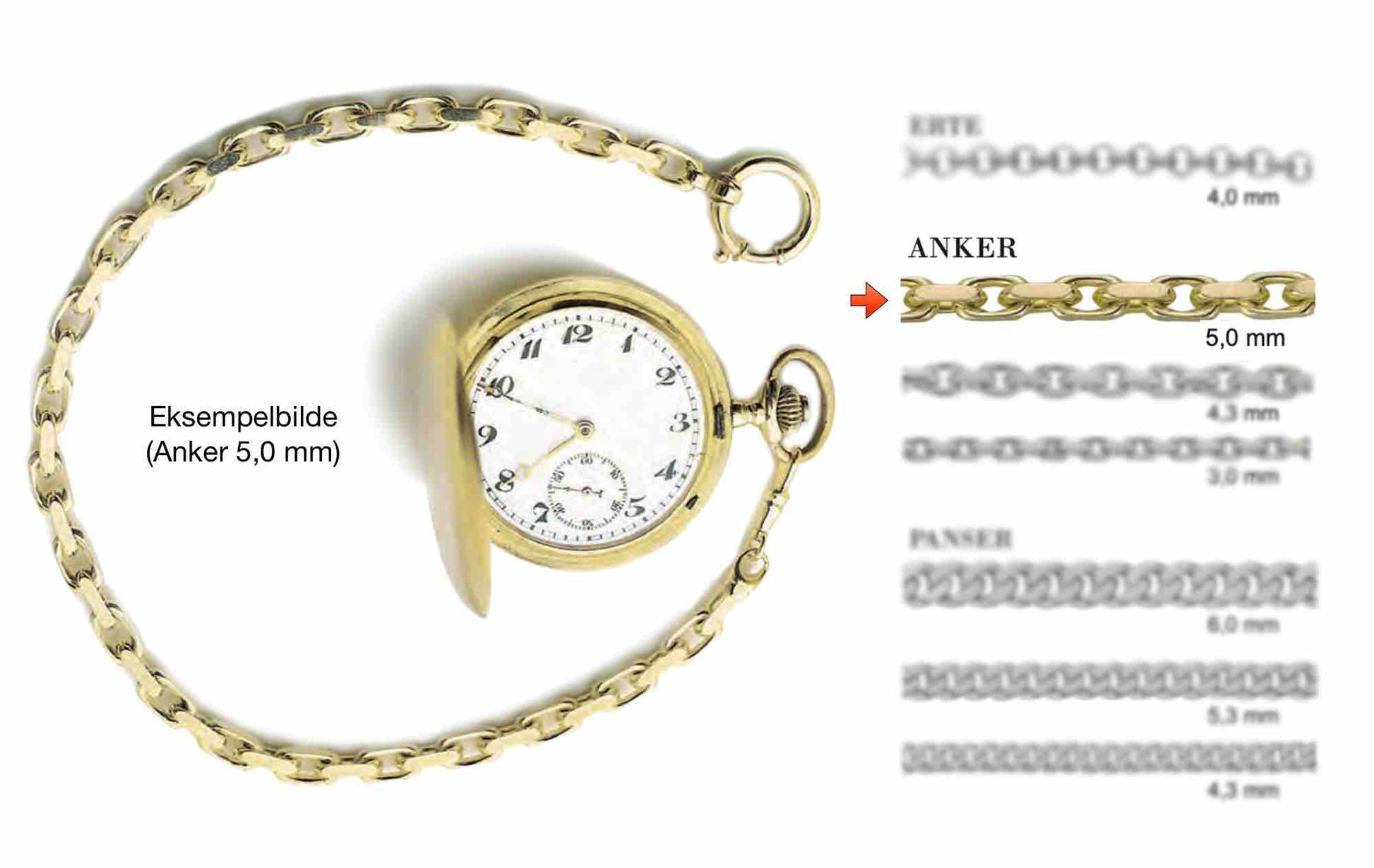 5,0 mm Anker lommeurkjede i 585 (14K) gull